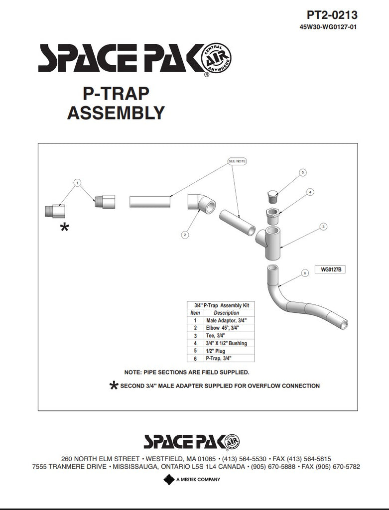 Spacepak PT2-0213 P-Trap Assembly 45W30-WG0127-01 (PT20213)
