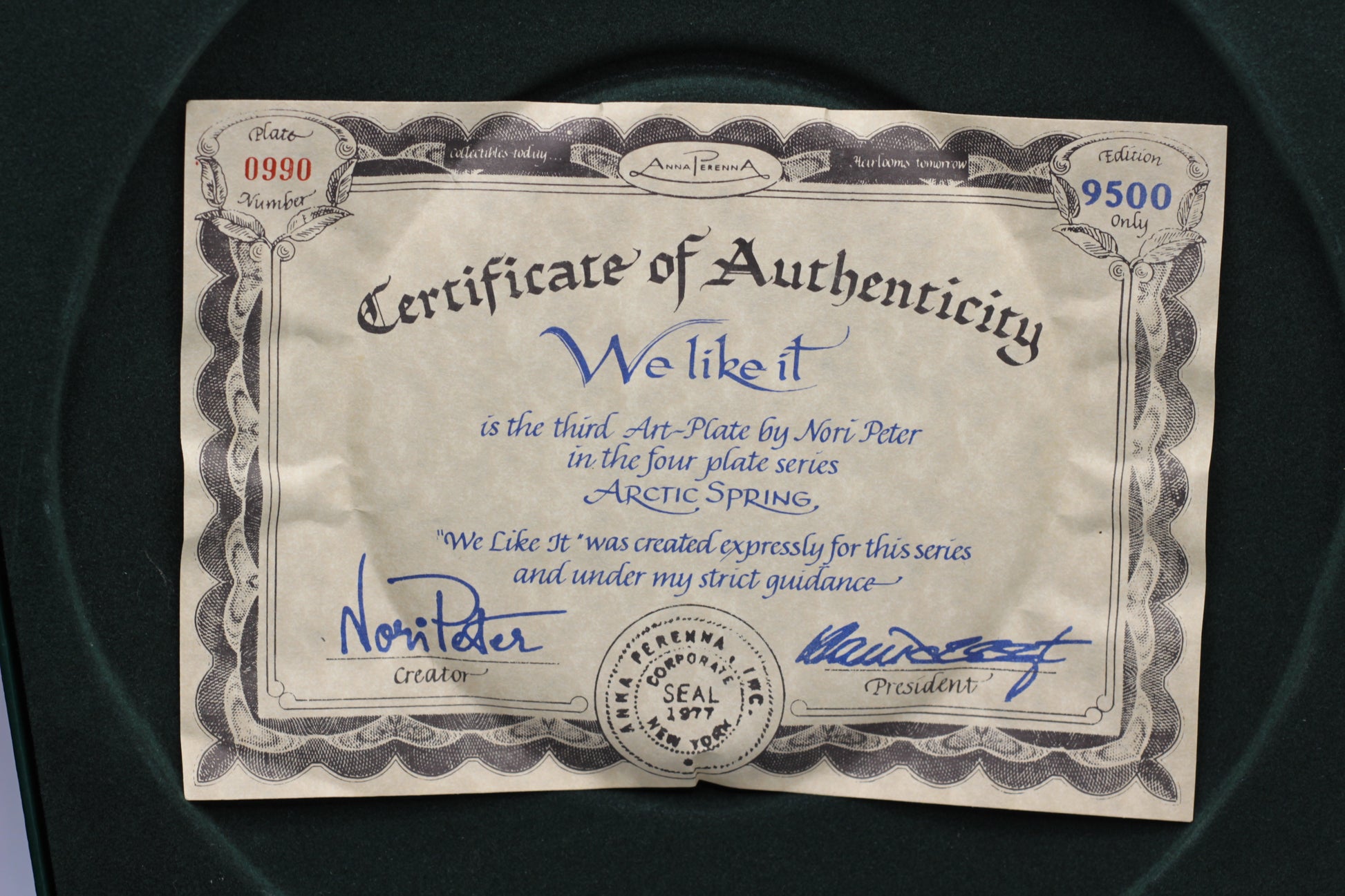 Limited edition, only 9500 of each plate were produced. Individually signed by the artist and accompanied by a certificate of authenticity. 9.5" plates are in perfect unused condition. The boxes may have slight wear on the edges. due to storage and transportation.