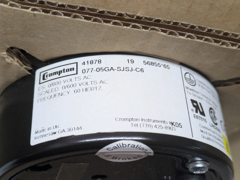 Crompton 077-05GA-SJSJ-C6 4" AC Panel Meter, 0-600VAC, 60Hz (07705GASJSJC6)