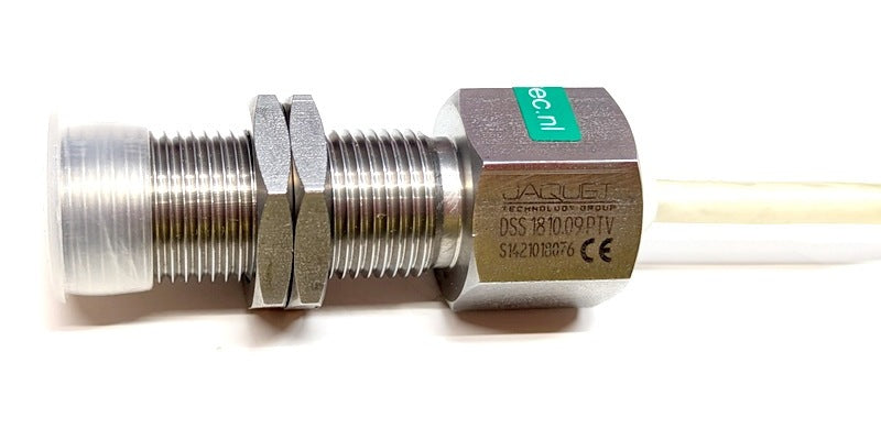The Jaquet DSS 1810.09 PTV is a precision single-channel Hall effect speed sensor designed for zero-speed detection in industrial and maritime applications. This sensor features a robust stainless steel M18 housing and a push-pull output stage, providing reliable square-wave signals for monitoring rotational speeds in harsh environments.